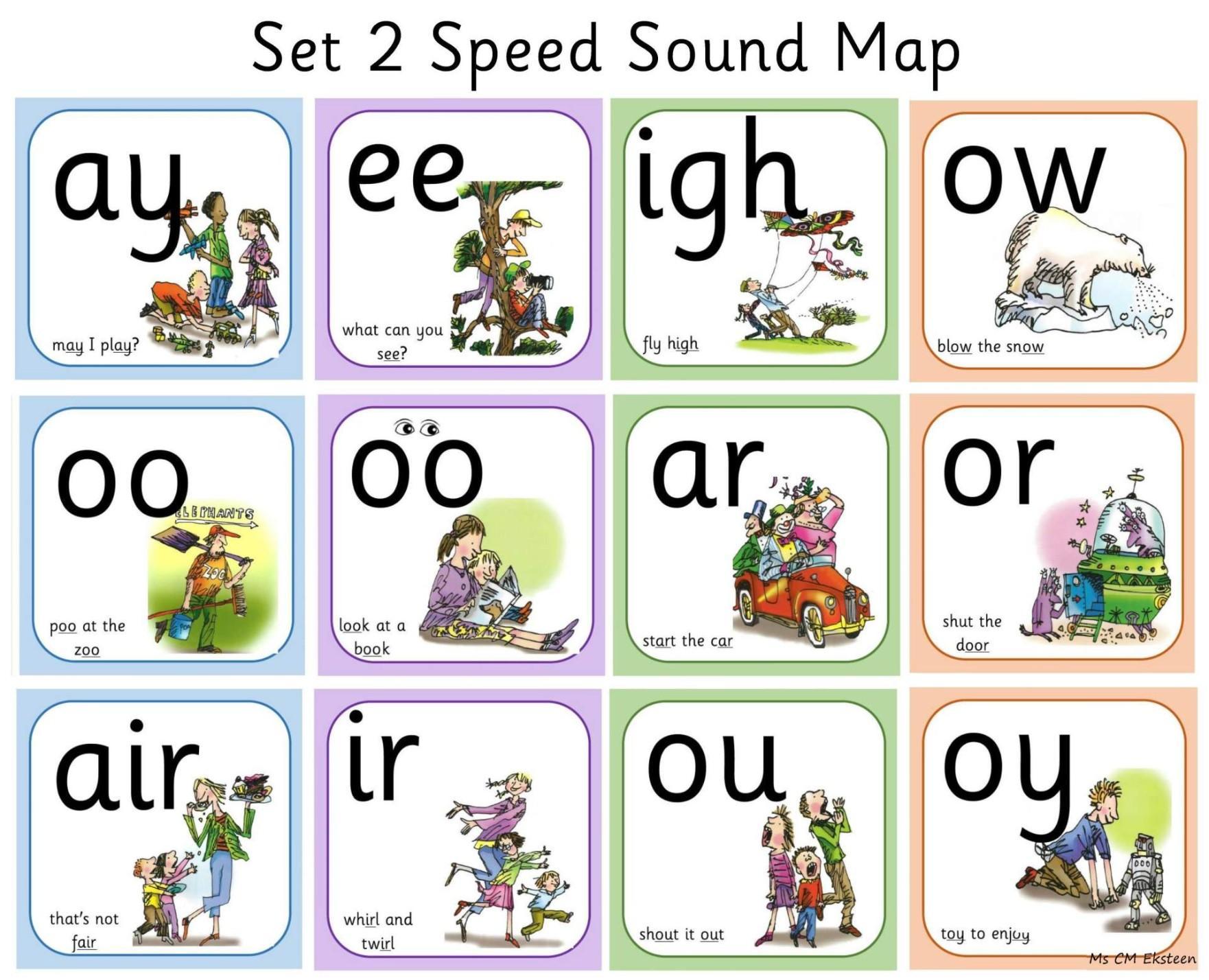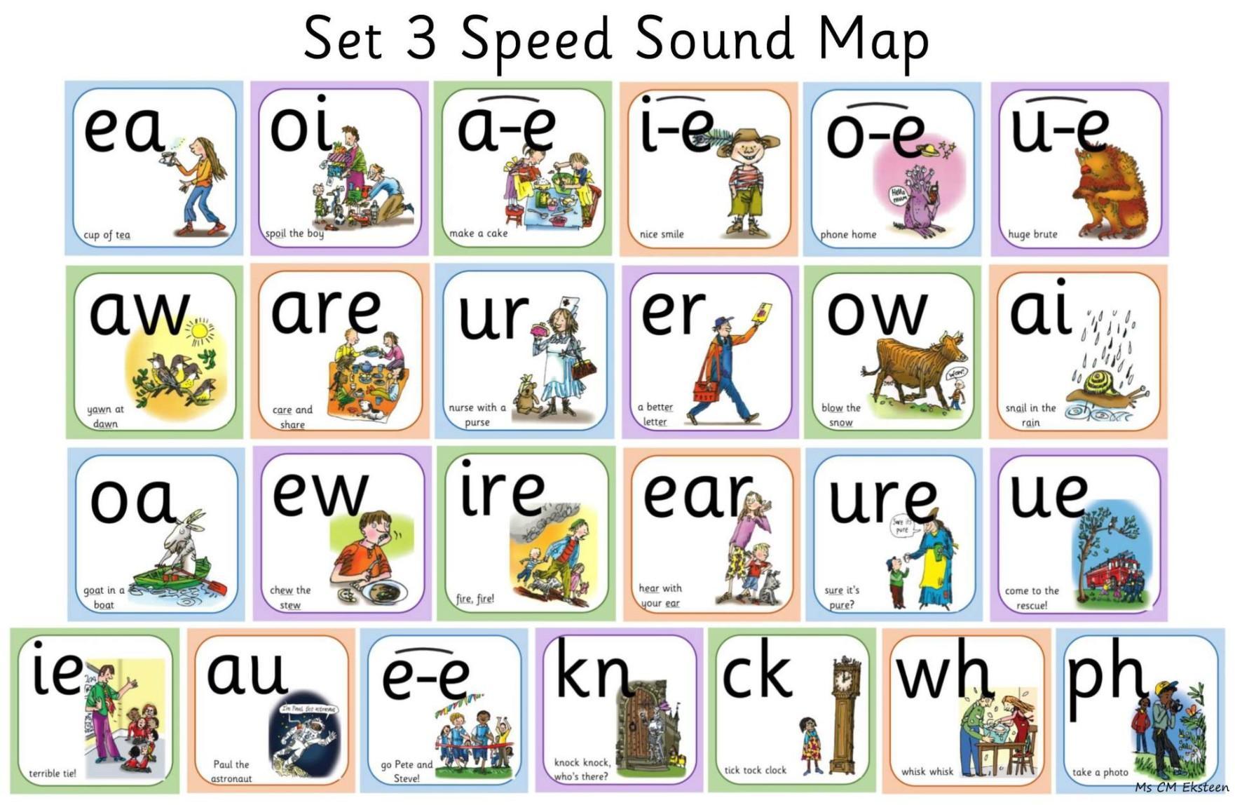 There are 20 Set 3 speed sounds that are made up of two or three letters which represent just one sound, e.g. ea as in tea, ow as in cow, and are as in care. As before, it is important that your child does not pronounce these as 2 or 3 separate sounds.